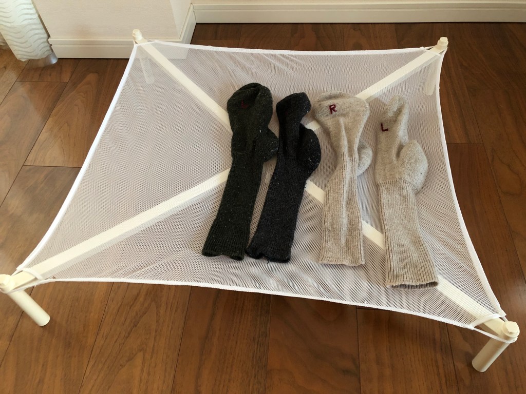 セーター干しネット (amazon)。靴下を洗濯を干すやつ(名前が分からない)の洗濯バサミにぶら下げる作業が大嫌いだったのですが、これを買って完全に解決しました。基本靴下をざっと並べるだけなので、10足くらいの靴下を10秒くらいあれば一気に靴下を干すことができます。これを浴室乾燥で使っています。今年買った物の中で一番役立っているかも。超おすすめです。