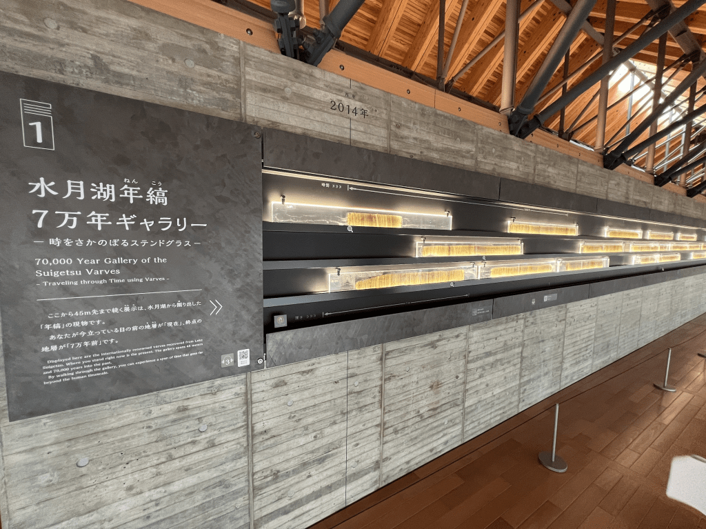 福井県年縞博物館。「時を刻む湖」という本が最高に面白かったので、舞台となった水月湖にいつか行ってみたいと思っていたのですが、遂に行けました。7万年分の地層が展示してあります。