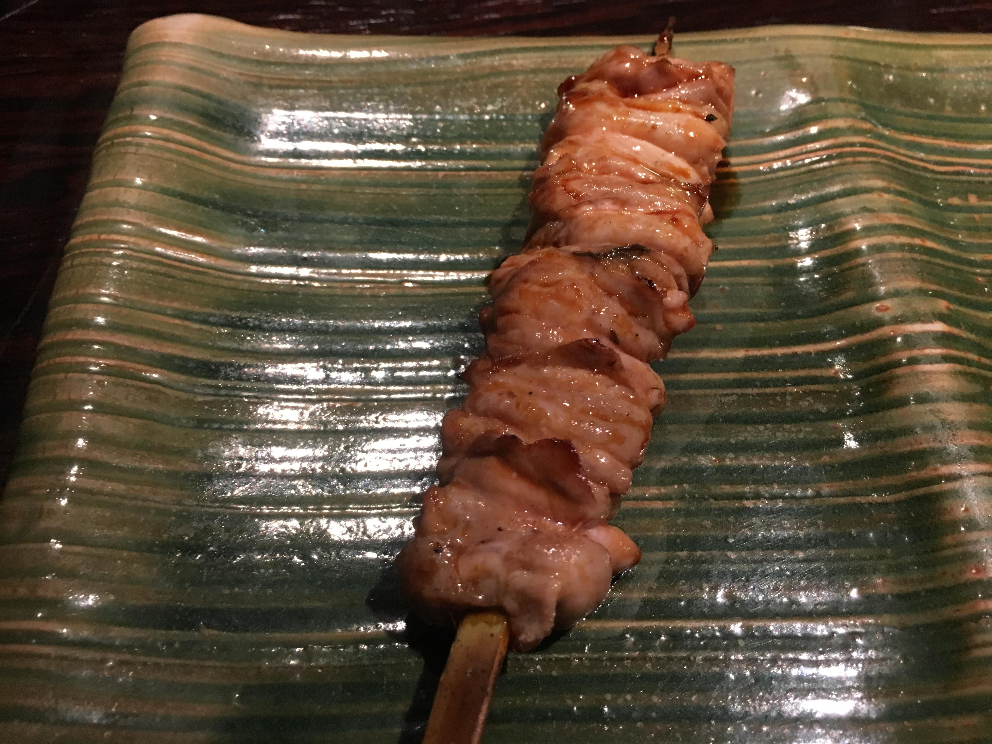 焼鳥今井@外苑前 (tabelog) – 外苑前からちょっと歩いたレフェルベソンスの近くにある焼き鳥屋さんです。大きなカウンターで比較的予約が取りやすいのが嬉しいです。コースが2種類ありますがアラカルトでも頼めます。野菜の焼き物がけっこう美味しくて、チーズ焼きもあり(下の写真)、ワインに力を入れてる感じなので、ベジタリアンの人と食べに来るのに使えるんじゃないかなぁと思いました。